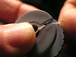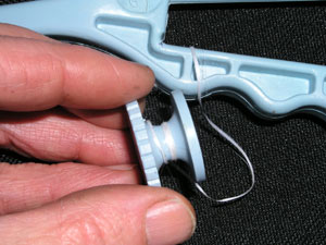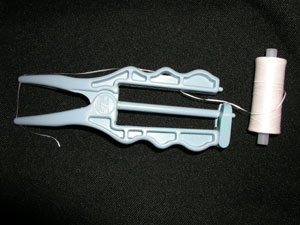 the floss suppy reel on the holding pen. Note the floss suppy winds opposite to